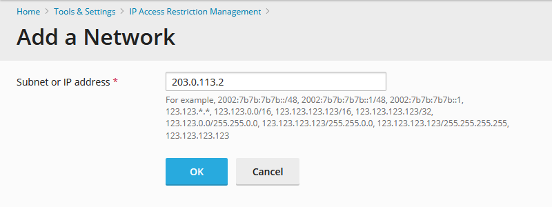 2.Go to Tools & Settings > IP Access Restriction Management (under Security)