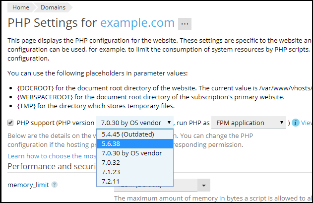 Website hosted on Plesk server does not work after switching to PHP 7.x: Call to
