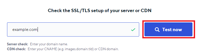 2.Enter the domain name, into the search bar and press the Test now button: