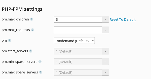 3.In the pm dropdown, choose either static (this ensures a fixed number of child processes defined by pm.child_processes are always available to handle user requests) or dynamic (In this mode, PHP-FPM dynamically manages the number of available child processes and ensures that at least one child process is always available, but the process count will not go higher than the amount configured in the pm.child_processes).