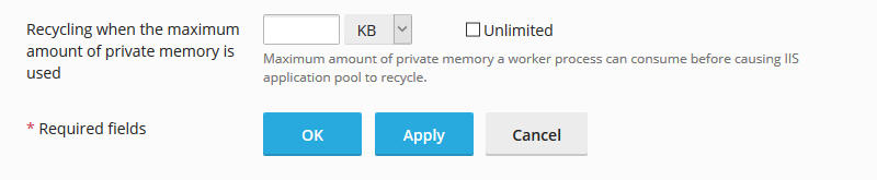 • Uncheck Unlimited next to the option Recycling when the maximum amount of private memory is used and specify your custom value.