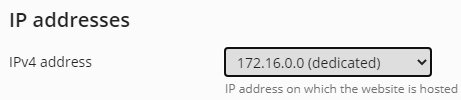 • A different IP address (public or private) is selected for this domain at Domains > example.com > Web Hosting Access: