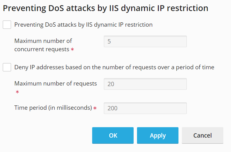 3.Either disable the option Deny IP addresses based on the number of requests over a period of time or adjust the Maximum number of requests and/or Time period: