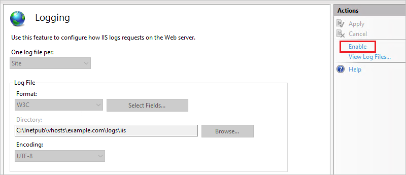 4.Enable IIS logging.
