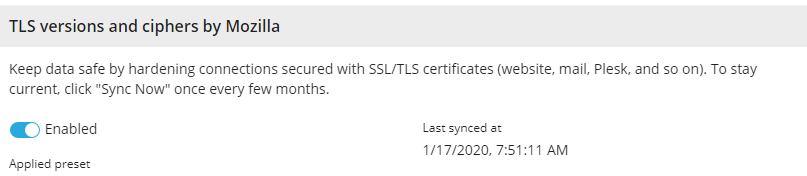 • TLS versions and ciphers by Mozilla under Tools & Settings > TLS versions and ciphers management > Settings are outdated: